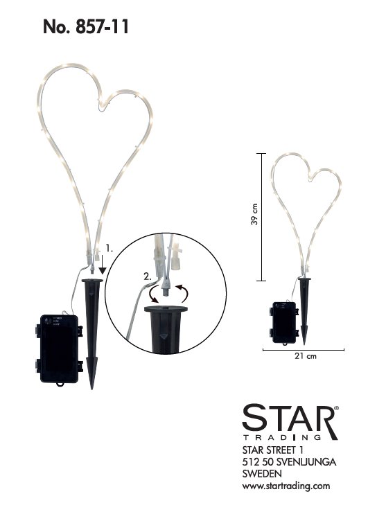 Wunderschönes Herz für draußen mit Ropelight und warmweißem Licht. Das Herz ist batteriebetrieben und der eingebaute Timer macht es einfach zu entscheiden, wann das Produkt eingeschaltet und ausgeschaltet werden soll.