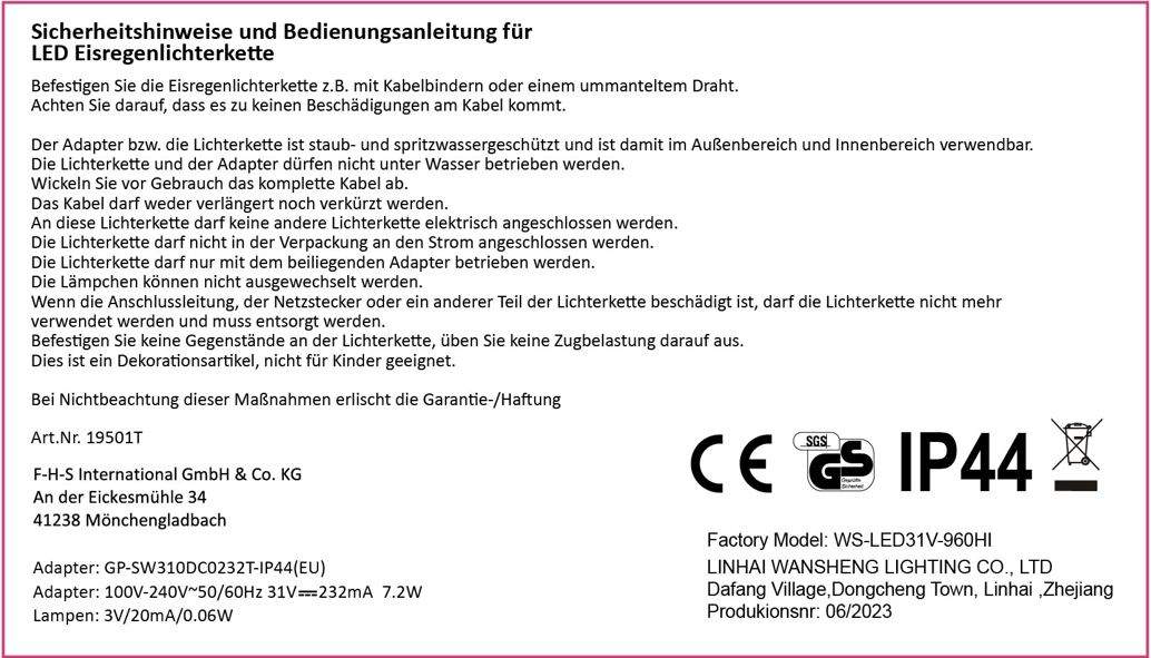 LED Eisregen Lichterkette mit 960 warmweißen LED – Länge 24m, 5m Zuleitung, Aufteilung Stränge : 15cm – 2LED, 35cm – 4 LED, 55cm – 6 LED Abstand zwischen den Strängen 10cm weißes Kabel, IP44 Aussenadapter