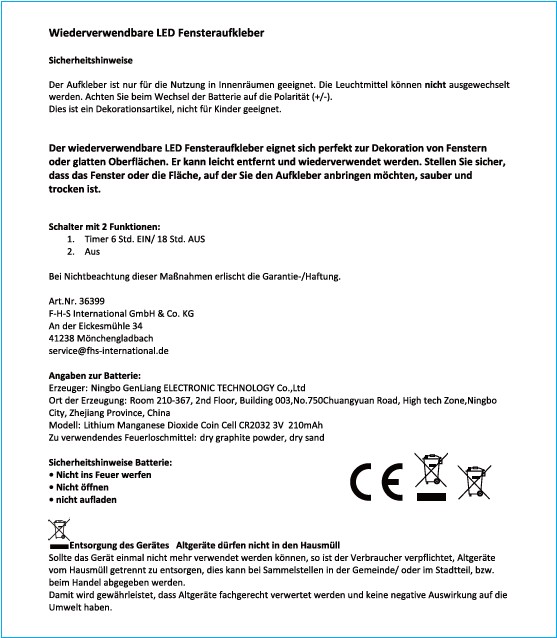 Mit dem integrierten 6/18-Stunden-Timer leuchtet der Schneemann automatisch 6 Stunden lang und schaltet sich dann für 18 Stunden aus – ganz ohne manuelles Ein- und Ausschalten. Das Batteriegehäuse wird mit einer handelsüblichen CR2032-Knopfzelle betrieben (im Lieferumfang enthalten).