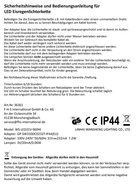 Das weiße Kabel wirkt dezent und elegant – ideal für eine winterliche und moderne Gestaltung. Dank der 5 Meter langen Zuleitung und dem wetterfesten IP44-Adapter ist die Lichterkette perfekt für den Außenbereich geeignet. Der integrierte 6/18-Stunden-Timer sorgt dafür, dass die Beleuchtung automatisch zur gewünschten Zeit ein- und ausgeschaltet wird – ganz ohne Aufwand.